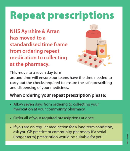 Patients on repeat medication will be asked to see a doctor, nurse practitioner, practice nurse or practice pharmacist at least once a year to review these regular medications and notification should appear on your repeat slip.